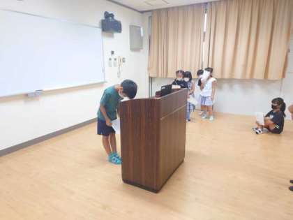 最後に、3・4年生の代表8人が、1学期にがんばったことを発表しました。
