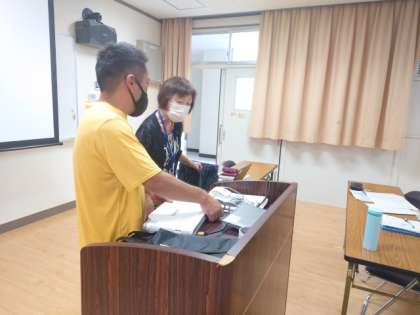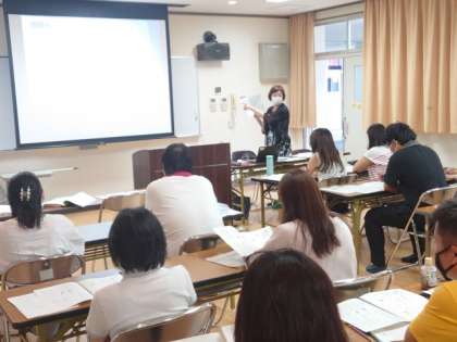 今日は、市教育センターのスクールサポーター 尾上節子先生にご来校いただき、校内教員研修を行いました。