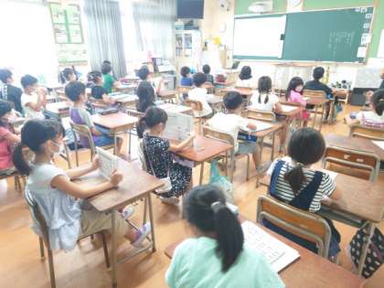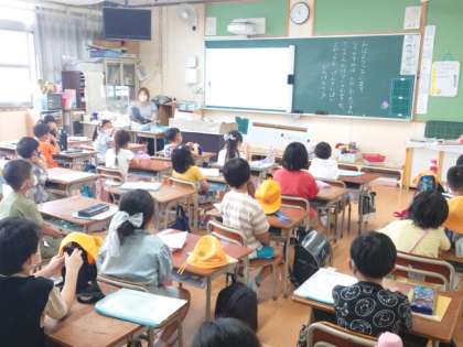 2学期初日の、教室での子どもたちのようすです。
