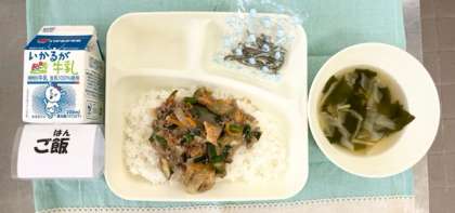 献立は、マーボーあつあげ丼・中華スープ・ミニフィッシュ・牛乳です。