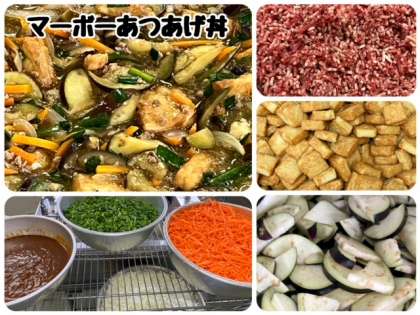 マーボーあつあげ丼は、あつあげを使用してボリュームを出し、気温が高い季節に食がすすむよう香辛料をきかせています。