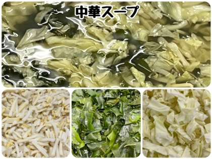 スープは、キャベツ・たけのこ・わかめを使用したあっさりとした中華風の汁物です。
