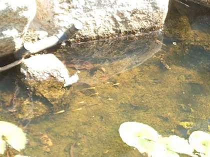 夏休み中に、学校の池の水を抜いて掃除をしました。