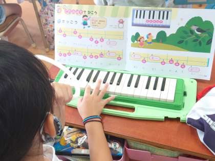 音楽科の時間は、鍵盤ハーモニカで「かっこう」の曲を練習しました。