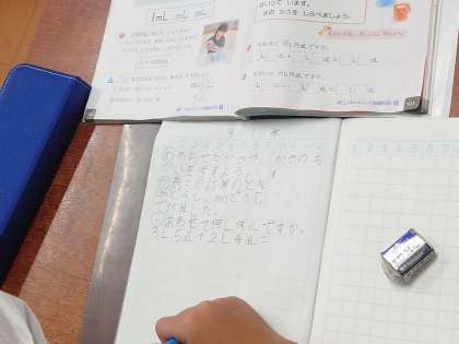 今日は、3L5dLの水と2L4dLの水を合わせるとかさは何L何dLになるのか、また、かさのちがいは何L何dLになるのかを計算する方法を考えました。