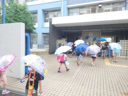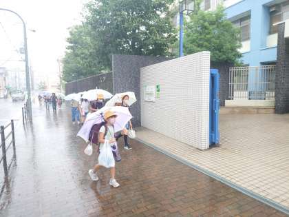 子どもたちの登校時間中に強い雨が降り出しました。