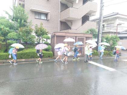 登校時間が終わるころには、小雨になりました。