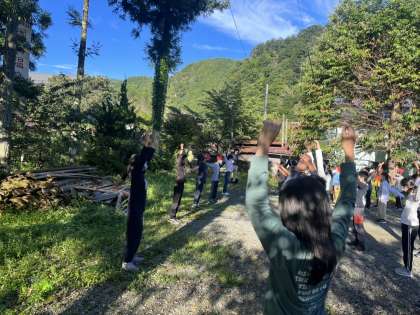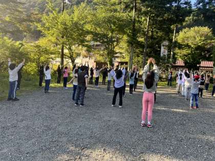 洗顔、布団整理などの身仕度をして、7時から朝の会を行いました。