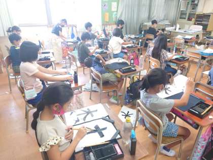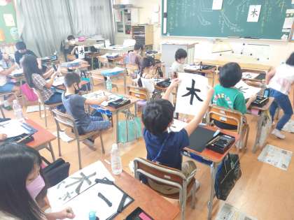 書き方の時間は、毛筆で「木」の字を練習しています。