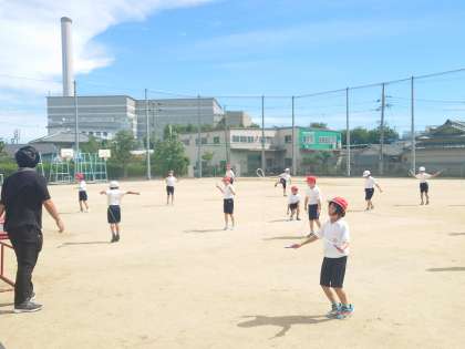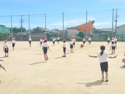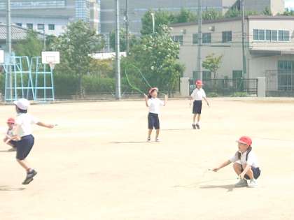 風が少々強く、なわが回しにくそうですが、がんばって練習しています。
