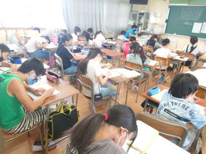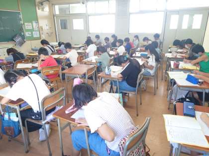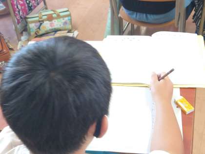林間学習を思い出し、作文を書いています。