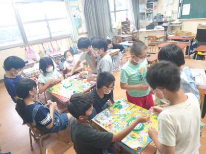 室内ゲームクラブ、ミュージッククラブ、手芸クラブの活動のようすです。