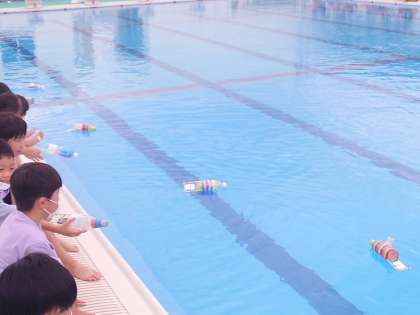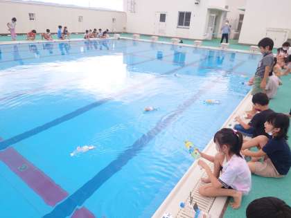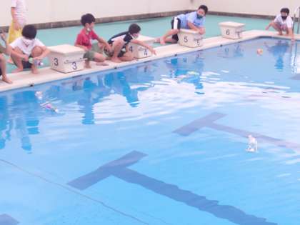 ゴムの力で進むと、子どもたちは大喜びでした。