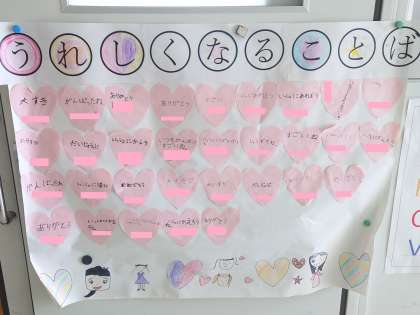 クラスのみんなで「うれしくなることば」をたくさん集めました。