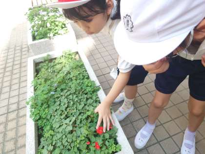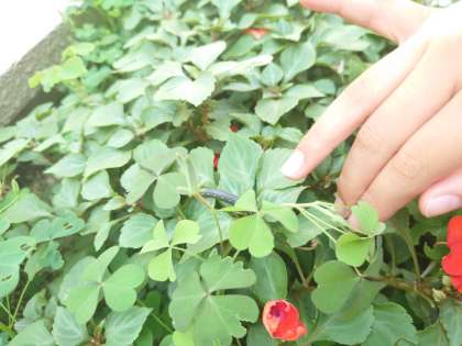 「先生、見て!イモムシがいる!」