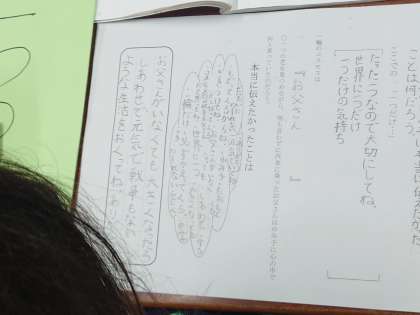 今日は、第4場面の内容を詳しく読み取り、戦争に行く日、お父さんがゆみ子に伝えたかった思いについてみんなで考えました。