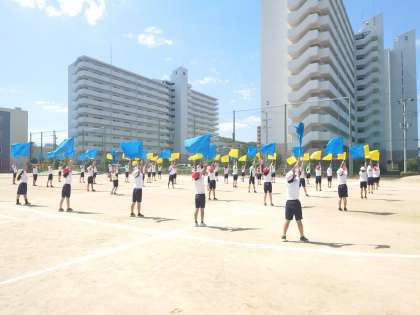 青空にフラッグの「黄色」と「水色」が映え、とても美しいです。