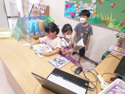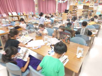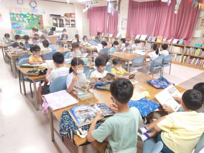 図書室で、子どもたちが静かに本を読んでいます。