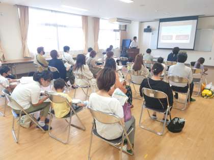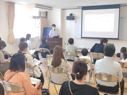 校長のあいさつの後、教務主任から本校の教育方針や学校行事、日々の活動のようすなどについてお話ししました。