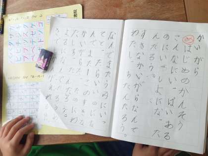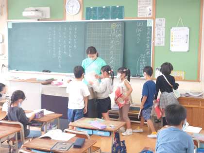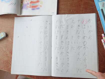 今日は、お話を読んで、プリントに初めて読んだ感想を書きました。
