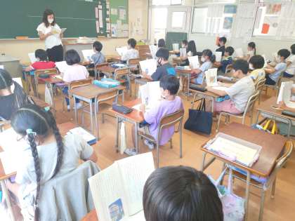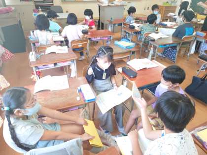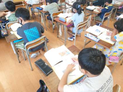 今日は、第三場面から「男の子」との交流によって気持ちが変化していく「じんざ」のようすについて読み取り、考えたことについて話し合いながら学習を深めました。