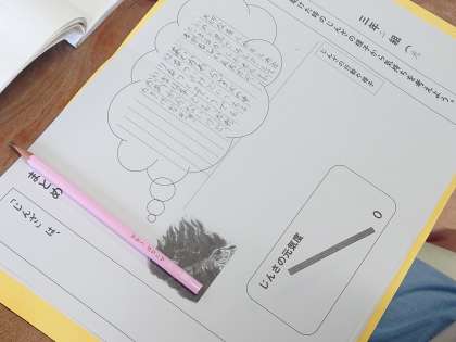 子どもたちは、本文から「じんざ」の気持ちを読み取り、自分が考えたことを一生懸命ワークシートに書いていました。