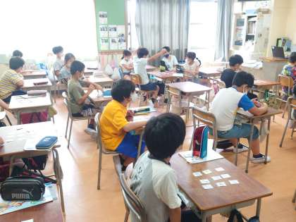 最後に、絵カードを9枚並べ、英語でビンゴゲームをして楽しみました。