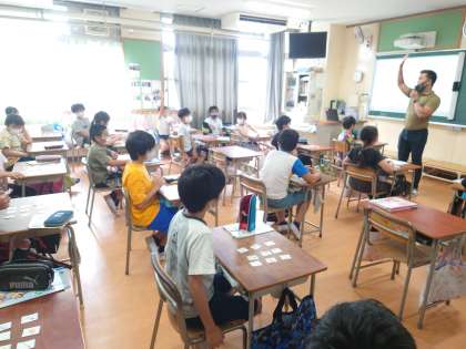 英語活動の時間は、C−NET(ネイティブ)の先生に教室に来ていただき学習しました。