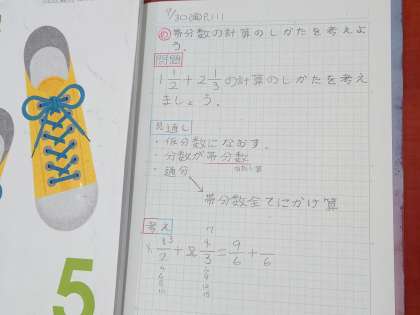 分母がちがう帯分数の計算の仕方(5年生) 〜9月30日〜