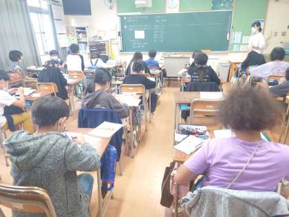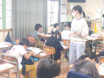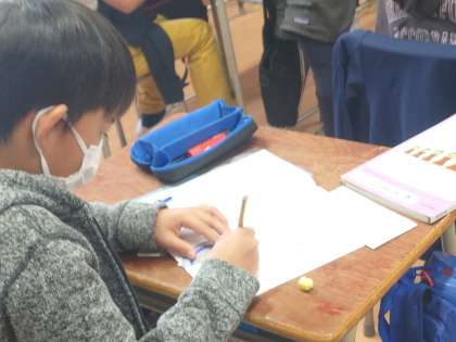 算数科の時間は、三角形ABCを方眼を使わずに2倍に拡大した図形を描く方法を考えました。