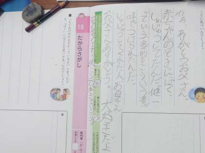 道徳の時間は、教科書の教材文「お父さんからの手紙」の学習をしました。