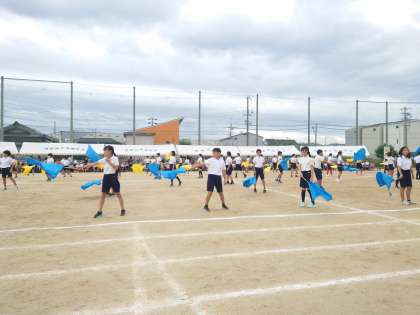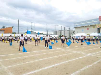 6年生の団体演技「フラッグ『切磋琢磨』」のようすです。