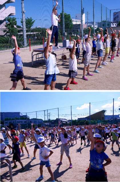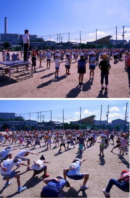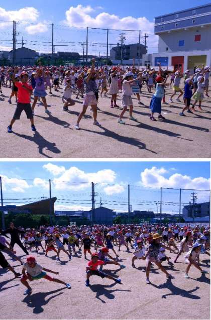 昨年度から地域行事などで、よさこいソーランが踊られています。焼野地域の盆踊りが7月24日(金)と25日(土)に行われます。午後6時すぎからよさこいソーランなどの子どものための行事があります。地域の行事に参加して楽しめるように、学校でもよさこいソーランの練習をしました。