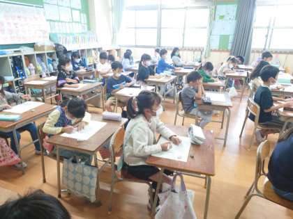 日曜日の運動会を振り返って作文を書いています。