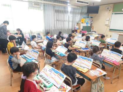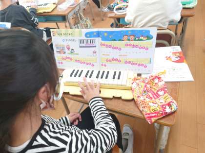 音楽科の時間は、鍵盤ハーモニカで「きらきら星」の曲を練習しました。