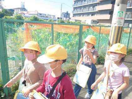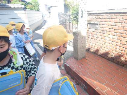 校区には、れんこん畑や古い道しるべがあるのですね。