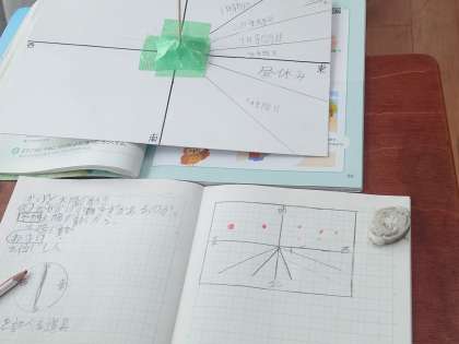 理科の時間は、かげの動きを記録して、1日に太陽がどのように動くのか調べました。
