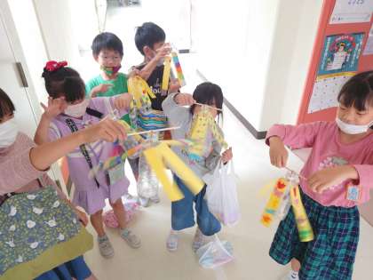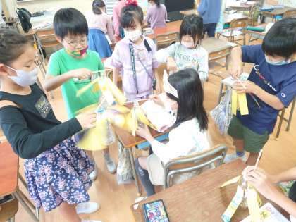 生活科の時間は、廃材を使っておもちゃづくりをしました。