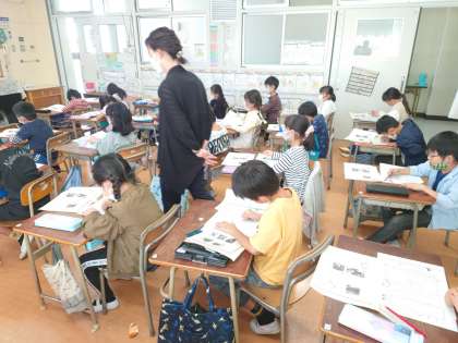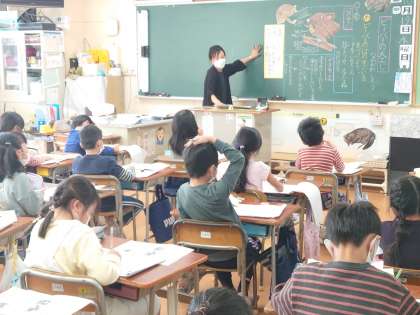 国語科の時間は、教科書の教材文「ビーバーの大工じ」の学習をしました。
