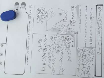 本文からビーバーの歯の「すごいところ」を読み取り、ワークシートにまとめました。