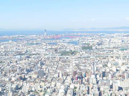 遠くに明石海峡大橋、淡路島が見えます。