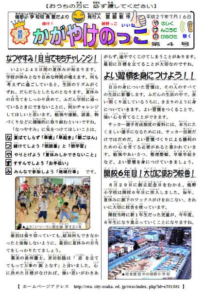 校長室だよりH27第4号を配布しました。ホームページにもアップいたしました。