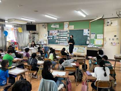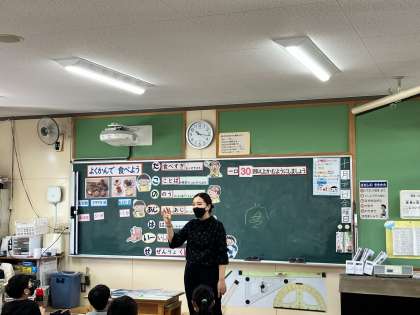 みどり小学校の栄養教諭の先生に来ていただき、3年生の教室で栄養指導を行いました。