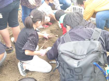 鶴見区の小学校の特別支援学級の合同行事として「いもほりえんそく」が行われました。焼野小学校からも、あゆみ学級の子どもたちが参加し、親子でいもほりを楽しみました。