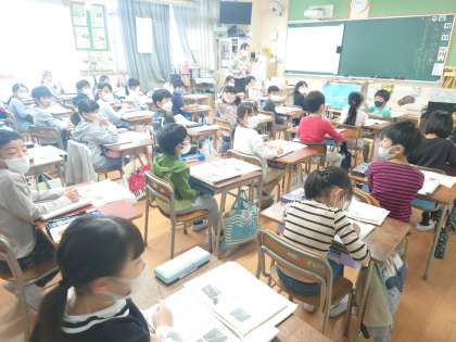 国語科の時間は、教科書の説明文「ビーバーの大工じ」の学習をしています。