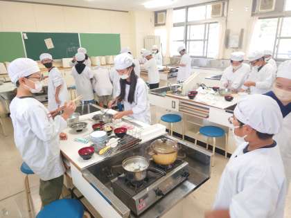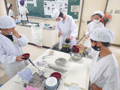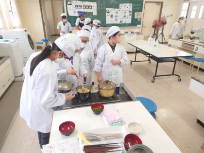 家庭科の時間は、ごはんとみそ汁の調理実習をしました。