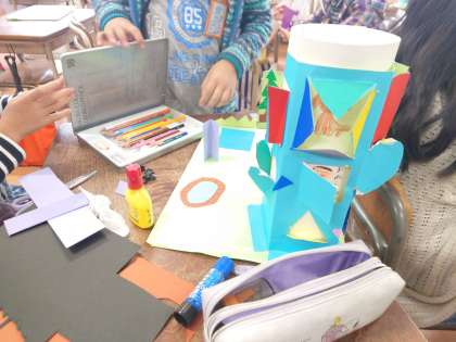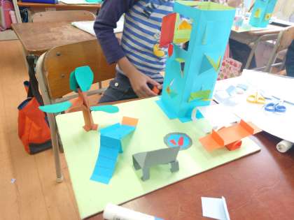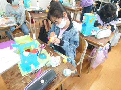 図画工作科の時間は、用紙に引いた線に沿って一生懸命カッターナイフで切り、窓を開く仕組みを作りました。