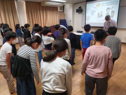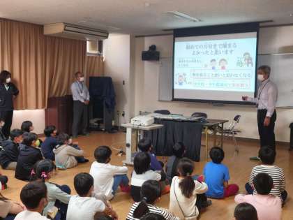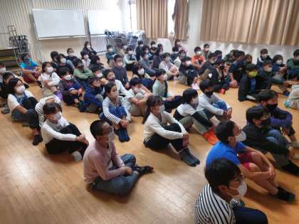 子どもたちは、よい姿勢で一生懸命話を聞いていました。
