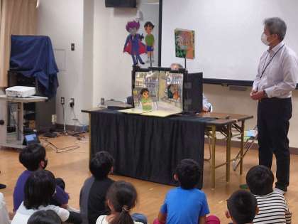 ペープサートなどを通じて、万引きや暴力、夜遊び、喫煙などの犯罪防止について、また、声かけ被害やSNSを通じた犯罪被害の防止についてのお話を聞きました。