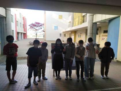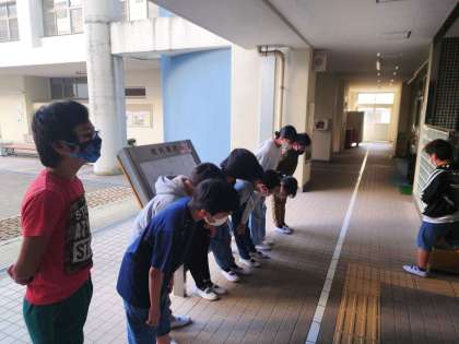 登校時間、今日も高学年の「あいさつ隊」があいさつ運動をしています。